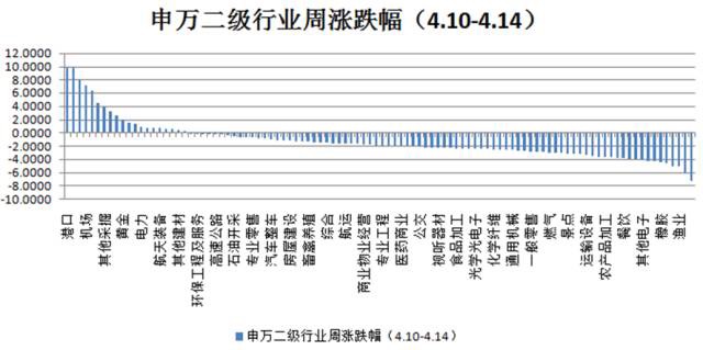 本周涨幅前5名申万二级行业分别是港口、水务、水泥制造、机场、汽车制造;跌幅前5名行业分别是旅游综合、营销传播、渔业、半导体、电机。
