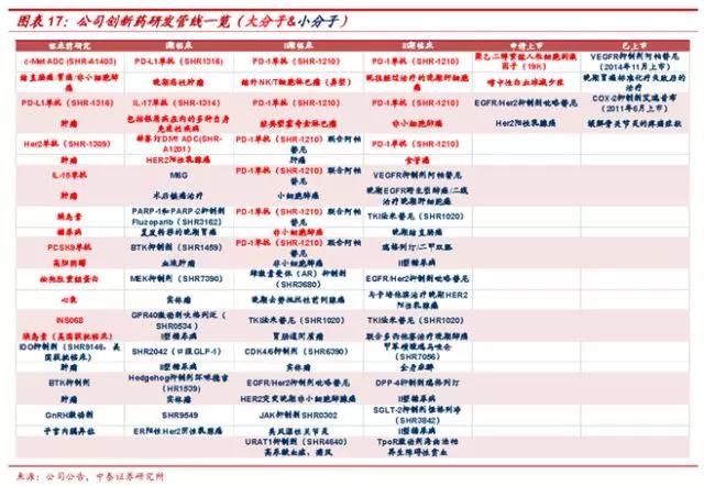 ◆PD-1单抗(SHR-1210):肿瘤免疫治疗产品,有治疗多种肿瘤的潜力,主要适用于肝癌、鼻咽癌,目前处于III期临床期。