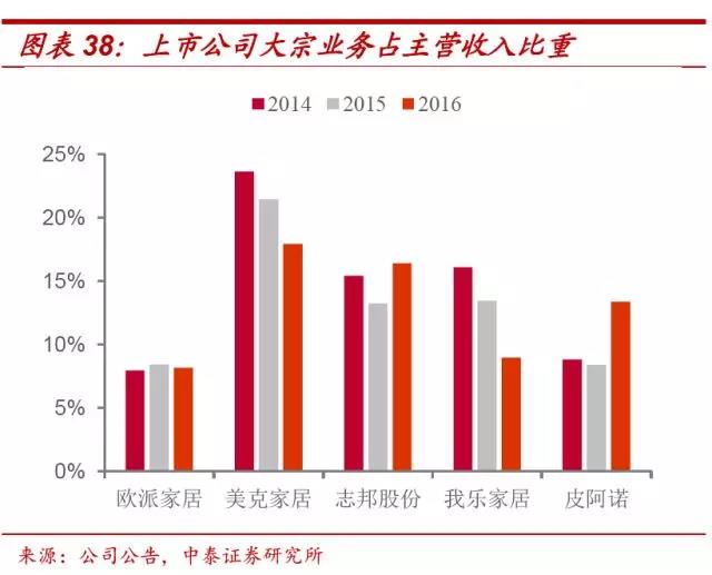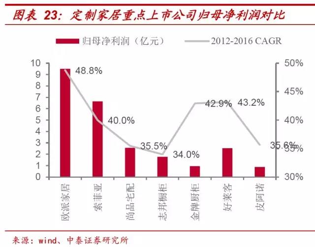 从需求端来看,80、90 后人群作为国内消费主力军,该部分群体在经济快速发展的大背景下,对任何消费都会有“快、方便”的倾向。在家居消费方面的表现为,希望通过一到两个品牌,解决全部家居需求。而全屋定制的一站式服务供应,符合主力人群的消费需求。另一方面,区别于传统成品家具和单品定制家居,全屋定制在设计风格的统一性和协调性方面明显更具优势,在为消费者省时省力完成家居配套的同时,也满足了个性需求最大化。目前来看,全屋定制在计划装修、正在装修和已装修房屋领域的平均渗透率为 27.60%,对比分别定制的渗透率,未来伴随消费者对“一站式购物”和“一体化家居”的诉求加强,全屋定制市场渗透率提高将是必然事件。