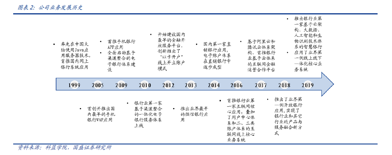 与官方和科技巨头深度合作,打造eID网络身份服务系统 - 公司CSIIVP eID人证合一网络身份验证平台,通过整合优势资源提供通用型网络身份验证能力,打造互联网银行底层基础设施,构建最安全的互联网用户实名制身份验证平台,已入选工信部《中小企业数字化赋能服务产品及活动推荐目录(第一期)》。2019年10月,公司携手公安部第三研究所、华为钱包,助力东莞农商银行率先实现在直销银行D Bank中,使用eID(公民网络电子身份标识)进行个人客户二、三类结算账户开户。客户可以通过华为钱包APP开通eID,轻松实现直销银行D Bank快速认证、开户。以此提供更安全的认证服务和更优质的客户体验。