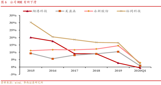 公司近年来 ROE 整体呈下降态势,主要系净利率与资产周转率的不断下滑。2019年公司实现 ROE2.76%,同比下滑6.18pct。2020Q1,受疫情影响,ROE进一步下滑至-0.55%。在可比公司中,公司ROE 由2015年位于行业高位下滑至如今的低位,后续随着公司盈利能力的不断改善,ROE也将有较大改善空间。