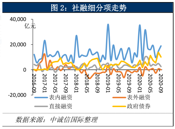 1)政府债券净融资、人民币贷款与非标合力驱动社融超出市场预期。9月社融新增3.48万亿元,高于市场预期3万亿元,同比多增9657.8亿元。政府债券净融资新增1万亿元,同比多增6326亿元;人民币贷款季末冲量,新增1.9 万亿元,高于市场预期1.7万亿元,同比多增2047亿元。9月份信贷季节性回 升,再加上央行压降信贷,表外融资主要是未贴现银行承兑汇票需求大增。 社融存量增速同样超预期。社融存量9月同比增速13.5%,较8月提升0.2个 百分点,考虑到社融的帮助,尊龙凯时 人生就是搏!平台判断9月的工业增加值增速将继续反弹回升。 此外,直接融资存有较大的上升空间。