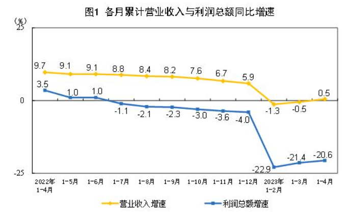 4月份,规模以上工业企业营业收入同比增长3.7%,增速较3月份加快3.1个百分点。在当月营收改善带动下,工业企业累计营收由降转增。1—4月份,规上工业企业营业收入同比增长0.5%,一季度为下降0.5%。