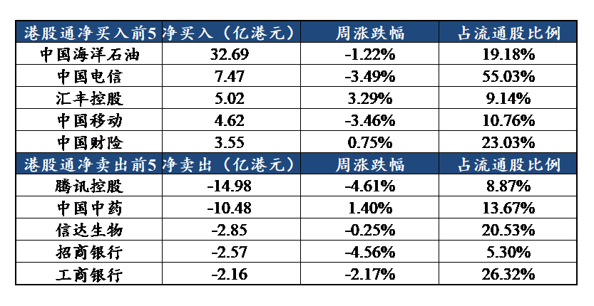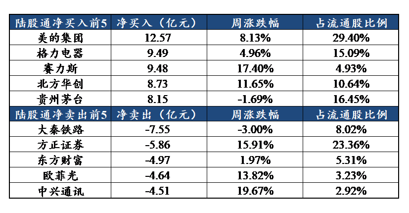 回顾一周沪深港通资金动向,本周北向资金合计净买入235.45亿元人民币,最近五周均为大幅流入一改过去半年持续净流出的态势,主要流入方向为沪深300的大权重标的。