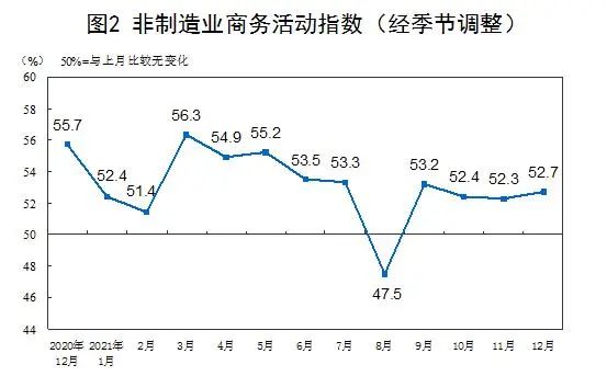 2、12月份,非制造业商务活动指数为52.7%,比上月上升0.4个百分点,高于临界点,非制造业恢复步伐加快。
