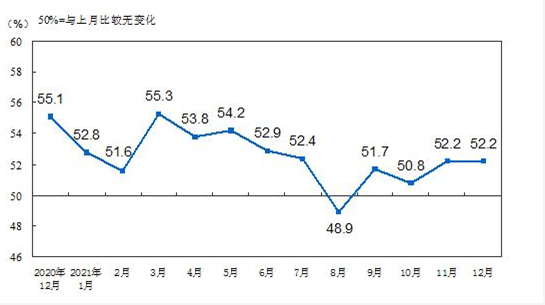 3、12月份,综合PMI产出指数为52.2%,与上月持平。