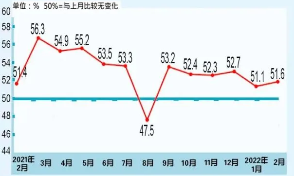 2月份,综合PMI产出指数为51.2%,比上月上升0.2个百分点,表明我国企业生产经营活动总体扩张步伐加快。