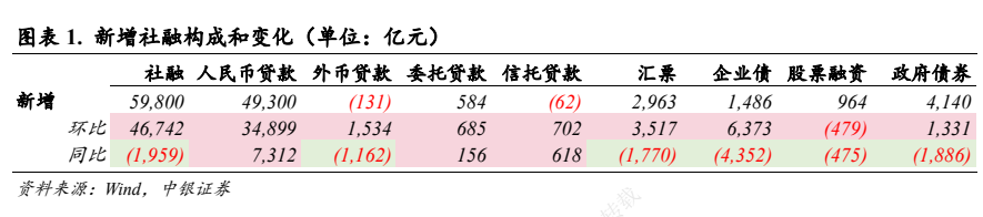 1月新增社融5.98万亿元,较去年同期少增1959亿元,高于市场预期。1月社融存量同比增长 9.4%,较上月下降 0.2 个百分点。