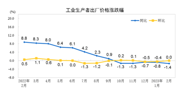 2、2月份PPI同比下降1.4%,PPI环比由上月下降0.4%转为持平。