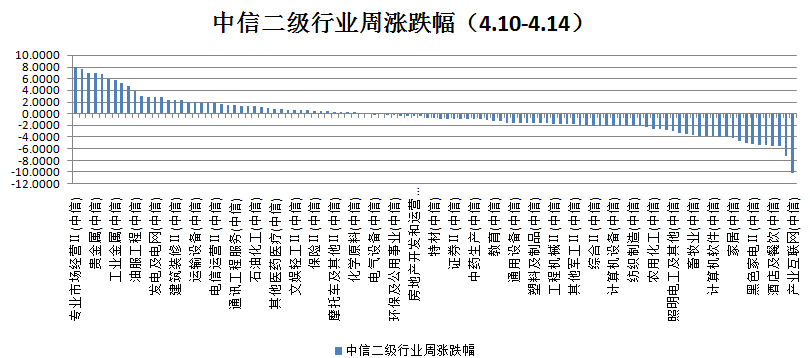 本周上证指数涨0.32%,创业板指数跌0.77%,沪深300指数跌0.76%,中证500指数跌0.52%。根据中信二级行业分类,本周涨幅靠前的行业专业市场经营、石油开采、新兴金融服务、贵金属及媒体,上涨幅度分别为7.88%、7.63%、6.96%、6.95%、6.77%;本周跌幅靠前的行业是产业互联网、云服务、酒类、酒店餐饮及厨房电器,下跌幅度分别为10.13%、7.19%、5.57%、5.52%、5.42%。