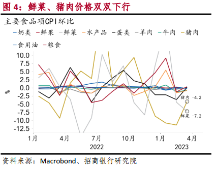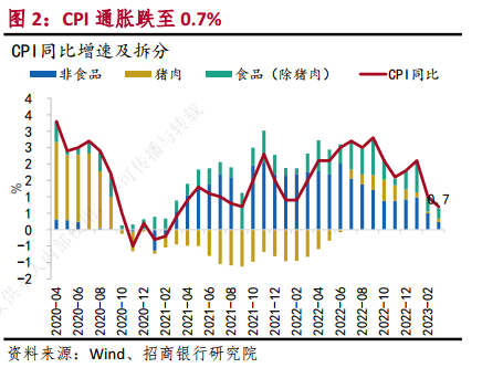 3月CPI 同比增速 0.7%(市场预期 1.0%),较前值下行 0.4pct。环比增速-0.3%,较前值回升 0.2pct;核心 CPI 同比增速 0.7%,较前值下行 0.1pct。环比增速 0,较前值回升 0.2pct。食品项通胀较前值回落 0.2pct至 2.4%,对 CPI 通胀的拉动较前值回落 0.1pct 至 0.4pct;环比增速提升0.6pct 至-1.4%;非食品项通胀较前值回落 0.3pct 至 0.3%,对 CPI 通胀的拉动较前值回落 0.25pct 至 0.25pct;环比较前值上行 0.2pct 至 0。