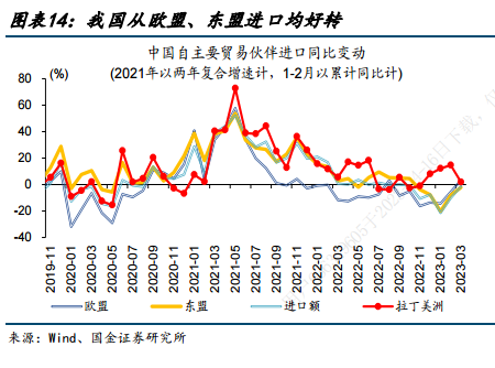 4 月13日,海关总署公布 3 月外贸数据,出口同比 14.8%,1-2 月为-6.8%;进口同比-1.4%,前值为-10.2%。