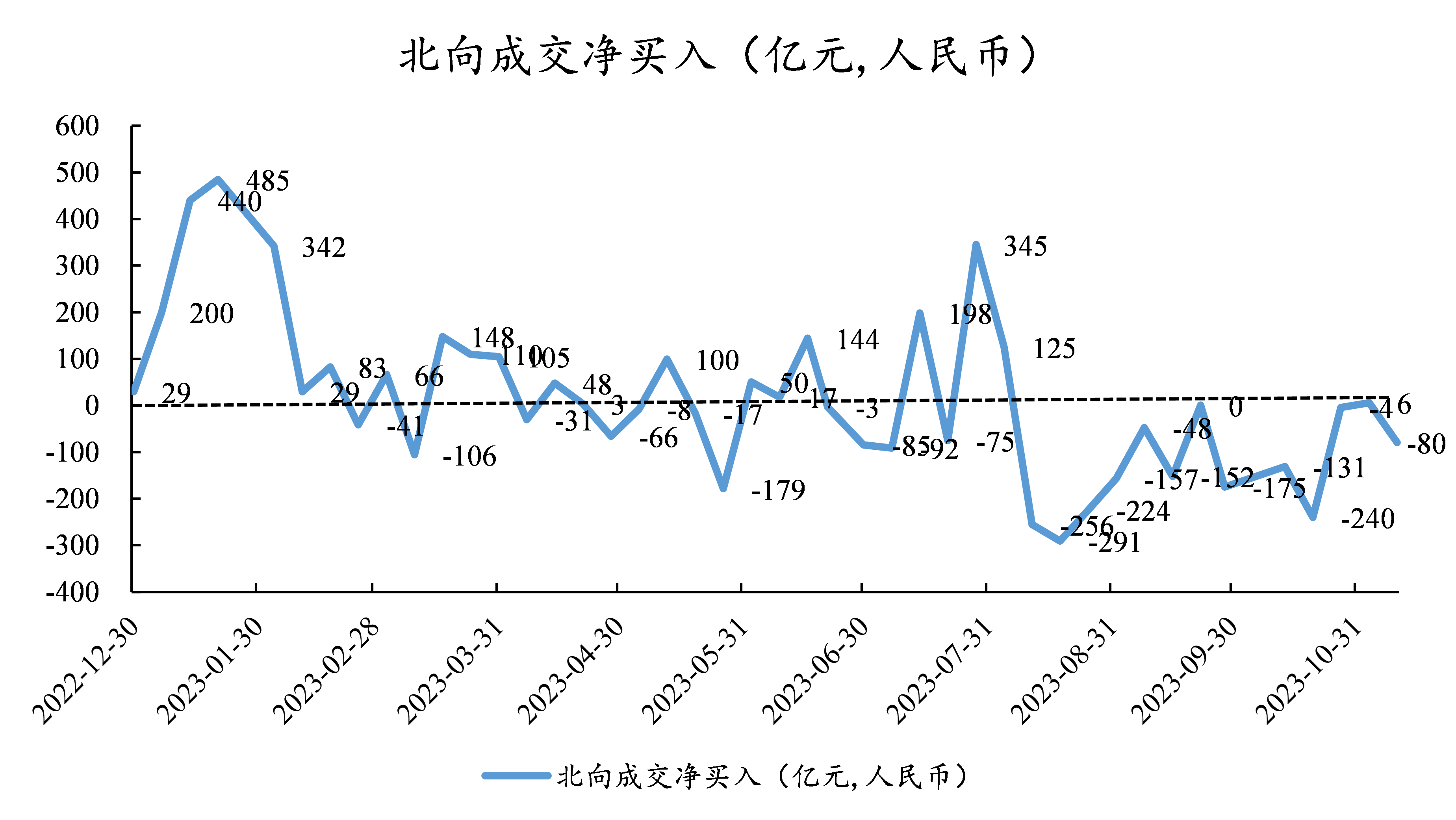 回顾一周沪深港通资金动向,本周北向资金合计净卖出79.5亿元人民币。在经历了连续三个月的大幅净卖出之后,11月前两周外资流出有所放缓。