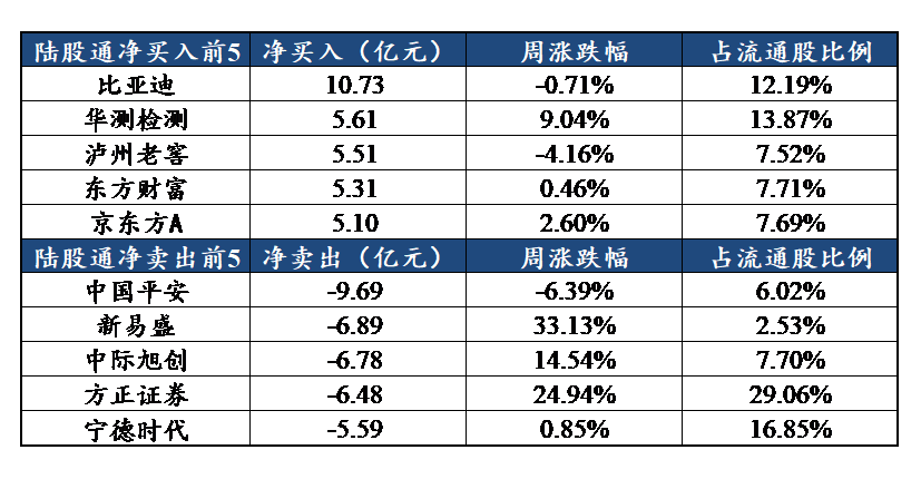本周前三天,市场单日成交额持续在1万亿左右,随着周四开始热门题材包括减肥药、短剧、汽车等开始回调,成交量回落至周五的8300亿。北向资金本周净卖出79.5亿元,受美联储前期释放不再加息的预期影响,前期被持续卖出的北向重仓股流出有所放缓,短期涨幅较大的个股被较多的卖出,体现出了部分北向资金开始回归理性。
