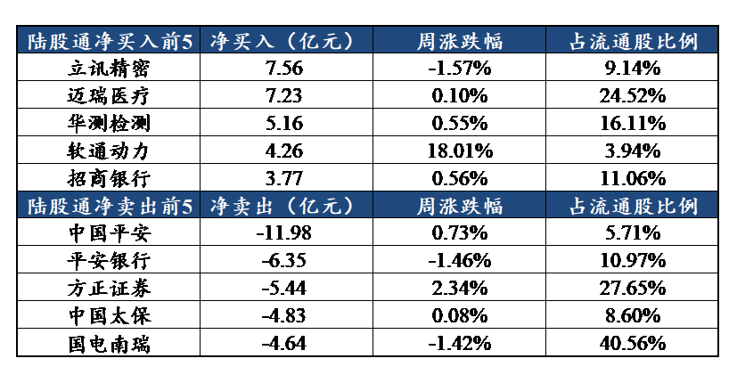 回顾一周沪深港通资金动向,本周北向资金合计净卖出49.8亿元人民币。